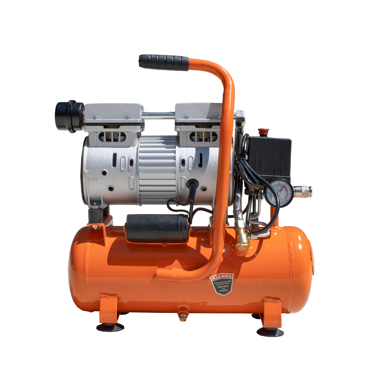 El Compresor de Aire Silencioso es la solución ideal para quienes necesitan un compresor de bajo ruido y alto rendimiento. Equipado con un motor eléctrico de 550W, ofrece una presión máxima de 8 BAR y es perfecto para quienes realizan tareas más delicadas o trabajan en entornos donde el nivel de ruido debe minimizarse, como pequeños talleres o espacios interiores.