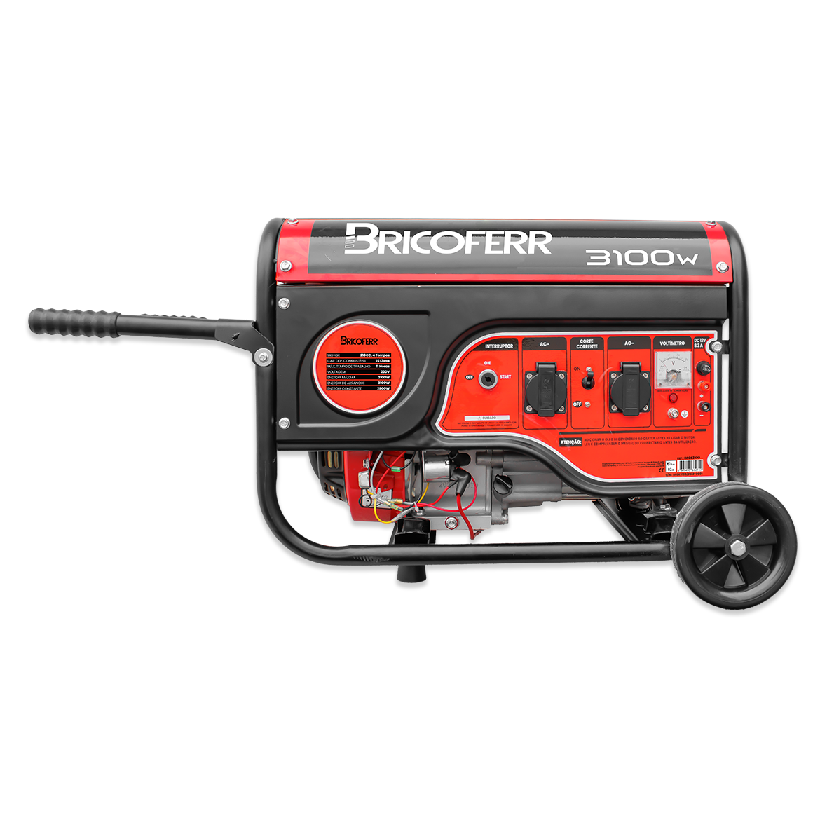 Generador a gasolina de 3100 VA con motor de 7 HP y cilindrada de 210 cc, de 4 tiempos. Indicado para el suministro de energía monofásica a 230V, ofrece un rendimiento estable y una autonomía prolongada, siendo ideal para su uso en obras, emergencias y lugares sin acceso a la red eléctrica.