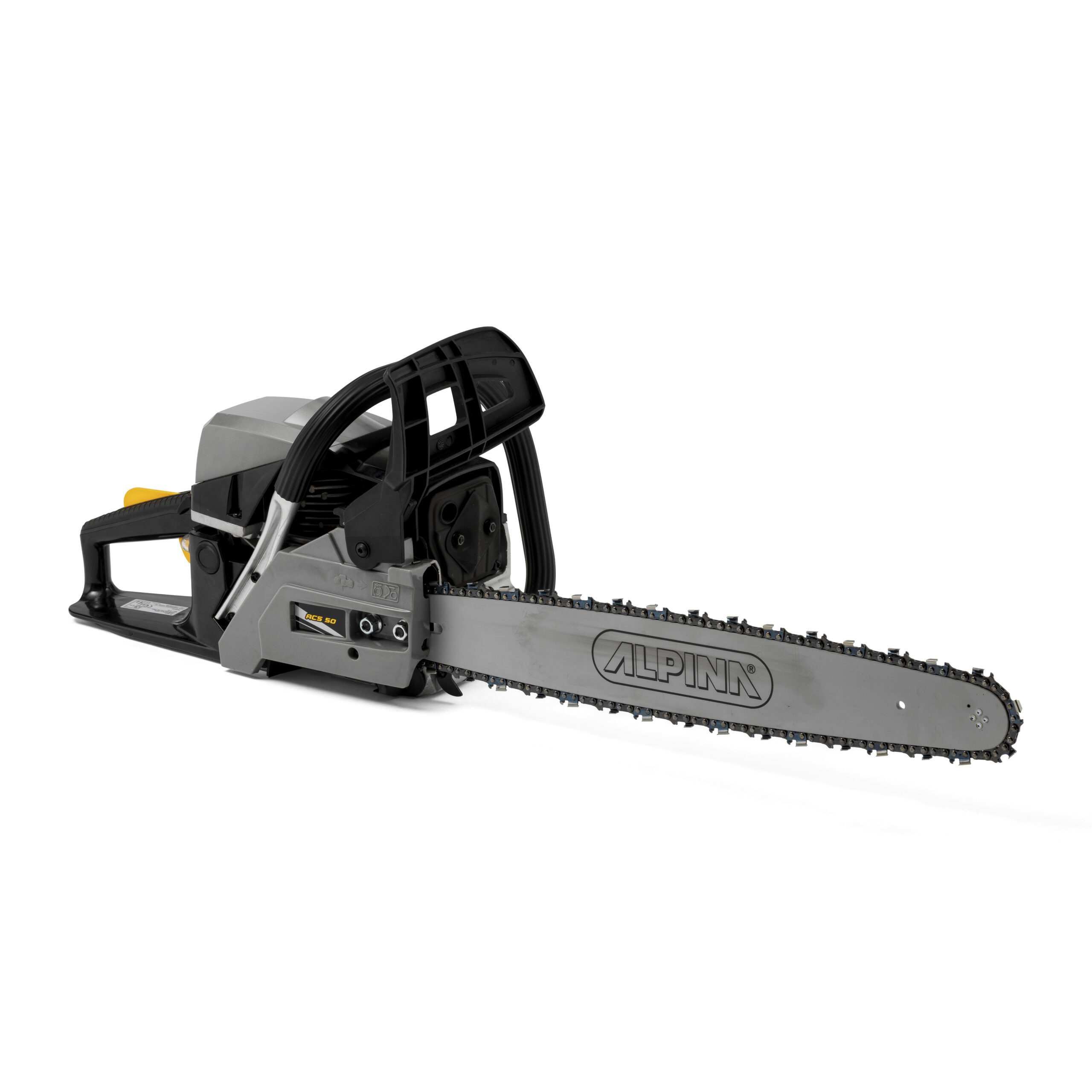 Como hermana mayor de la familia, la Alpina ACS 50 es una motosierra de alto rendimiento, equipada con una barra de 50 cm y un motor de gasolina de 49,3 cc. Fabricada para exigentes sesiones de corte, cuenta con una lubricación automática de la cadena, que aumenta el rendimiento. Los resistentes componentes y la cadena de alta calidad hacen que esta motosierra sea el mejor socio para trabajos de corte de madera profesionales.