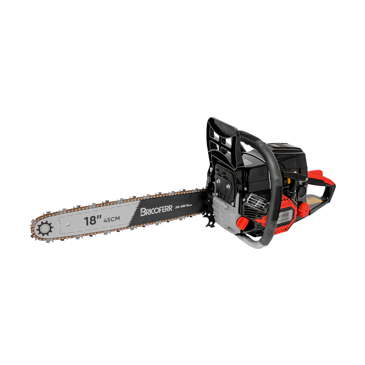 La Motosierra 49cc con motor de 2 tiempos y 49cc es una herramienta potente y de alto rendimiento, ideal para trabajos exigentes con madera de gran tamaño. Equipada con espada Oregon de 18″ y cadena de 0.325″, ofrece cortes rápidos y eficaces en tareas pesadas de desrame y poda.